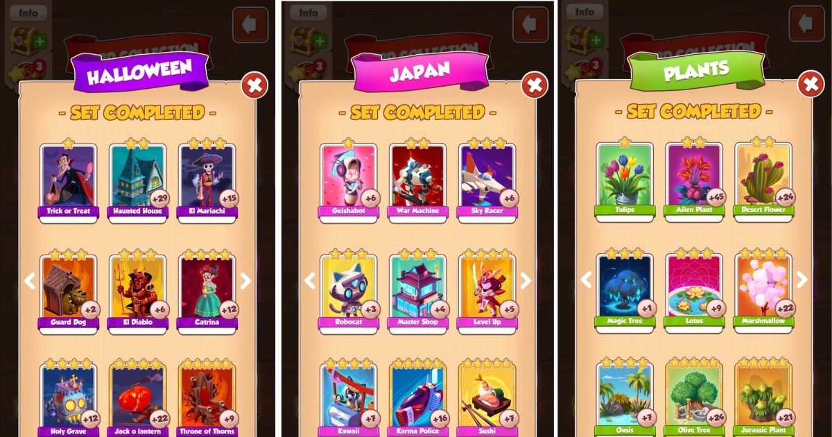 As cartas são ganhas abrindo baús, que são comprados com moedas. Existem várias coleções de cartas temáticas e cada coleção contém nove cartas. Colete todas as nove cartas em uma coleção e você será recompensado com bônus, incluindo rodadas grátis, um grande influxo de moedas e até animais de estimação.